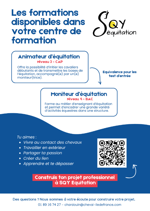 Renseignements : 01 30 16 44 46 | contact@sqyequitation.fr